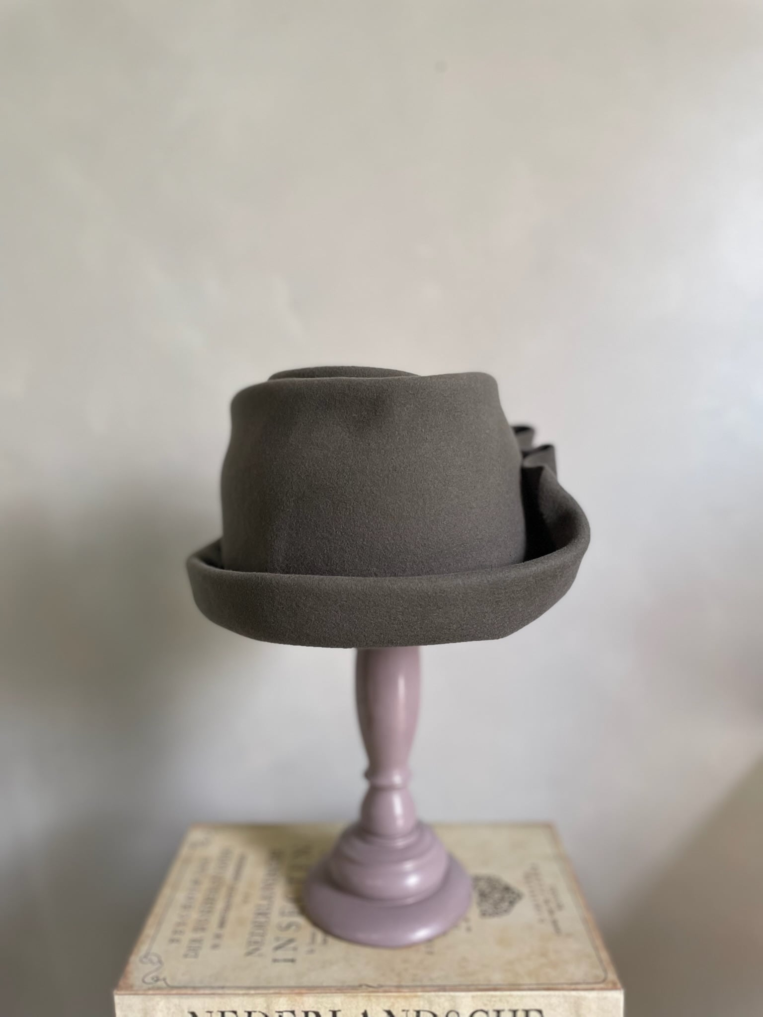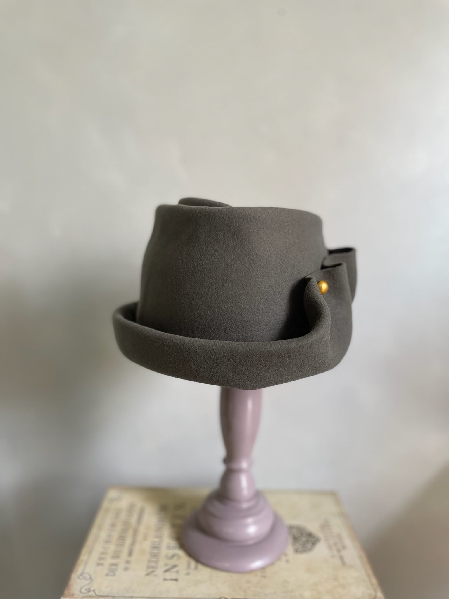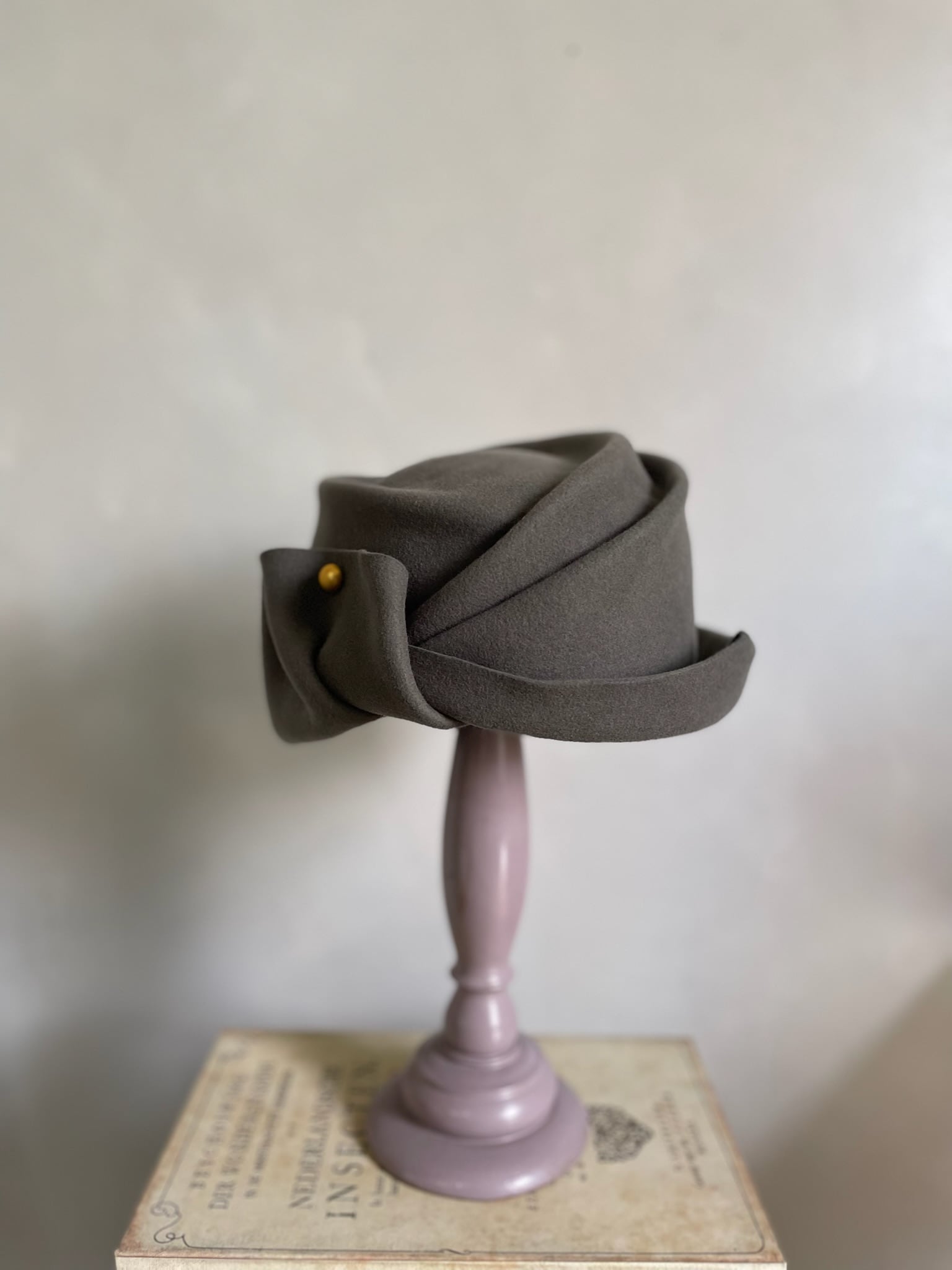 サイドウェーブとゴールドボタンが際立つ変形中折れハット。