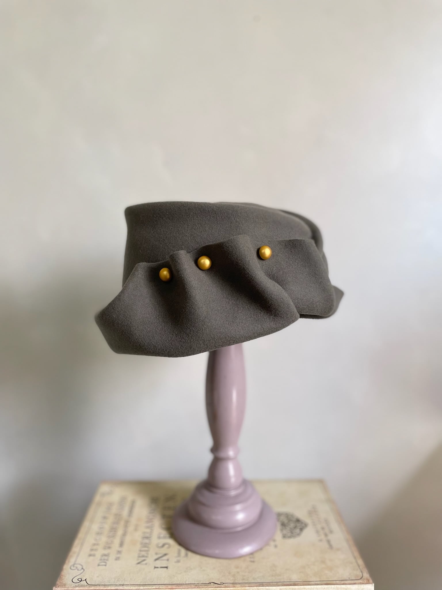変形中折れハット サイドウェーブ×ゴールドボタン